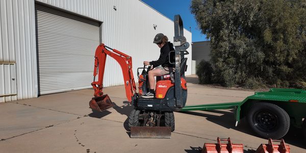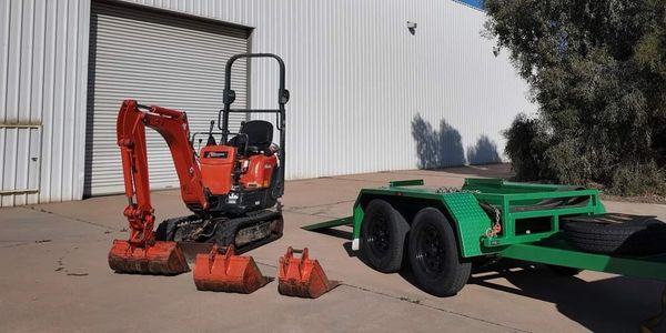 The mighty little Mini Excavator retracts to just 700mm wide, you could drive it into your lounge room. Easy to use, and extremely capable, zero swing, and a selection of buckets!